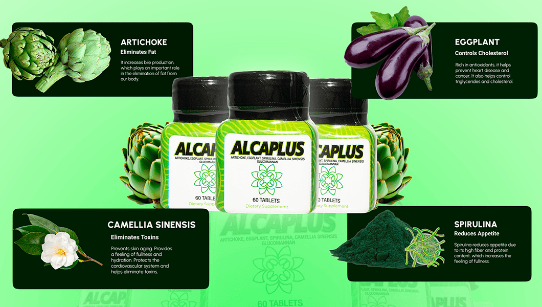 Alcaplus es un alimento 100% natural diseñado para apoyar tu proceso de pérdida de peso de forma saludable y sostenible. Cada componente ha sido cuidadosamente seleccionado y cuenta con estudios clínicamente comprobados que respaldan su eficacia.
